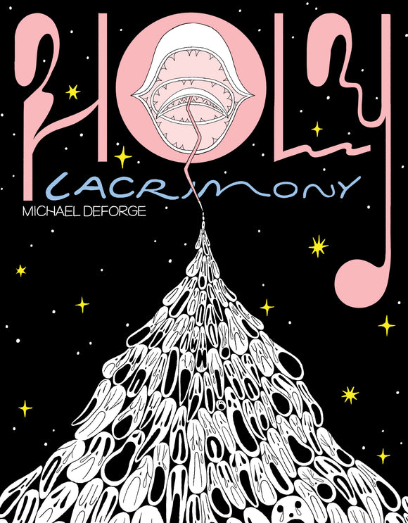 Holy Lacrimony is classic DeForge–oscillating between shockingly dirty, casually funny and earnestly engaged in the socio-politics of his fictive worlds. Part abstract shape blending and part hieroglyphic storytelling, each image is a discrete and tightly designed object of beauty that never loses the forward motion of the best personal cartooning. DeForge continues to prove that he’s the single most innovative and empathetic cartoonist in the past twenty years.
